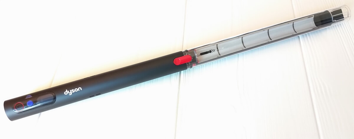 The PencilVac uses air to compress powder and maximize the container’s capacity from just 0.08 litres. Tank that retains the traditional Dyson emptying system: the transparent cylindrical casing slides downwards, with a seal that pushes dirt out and cleans the pre-filtration grid. Unlike the company’s other vacuum cleaners, the user will have to remove the Fluffycones brush, the container being inserted inside the rod.