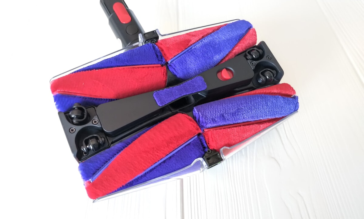 The Fluffycones brush is also innovative: compact suction head with four two-tone conical rollers. Let’s not forget the dimensions: height of 1,160 mm, length of 226 mm and width of 38 mm. We also remember the low weight of 1.8 kg.