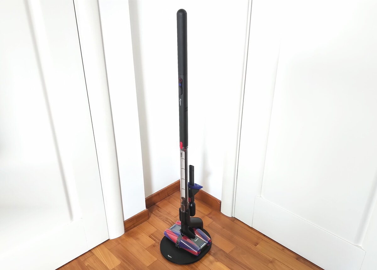 Let’s move on to the battery with not very high autonomy: less than 10 minutes at maximum power and up to around 25 minutes in Eco mode. Among the other aspects that did not convince us were the long battery charging times (up to 3 and a half hours), the very small and difficult to read display, the plastic charging base with not very high stability and the absence of a second battery supplied. Furthermore, the product is not suitable for carpets, due to the brush used and the low suction power, as also stated by Dyson.