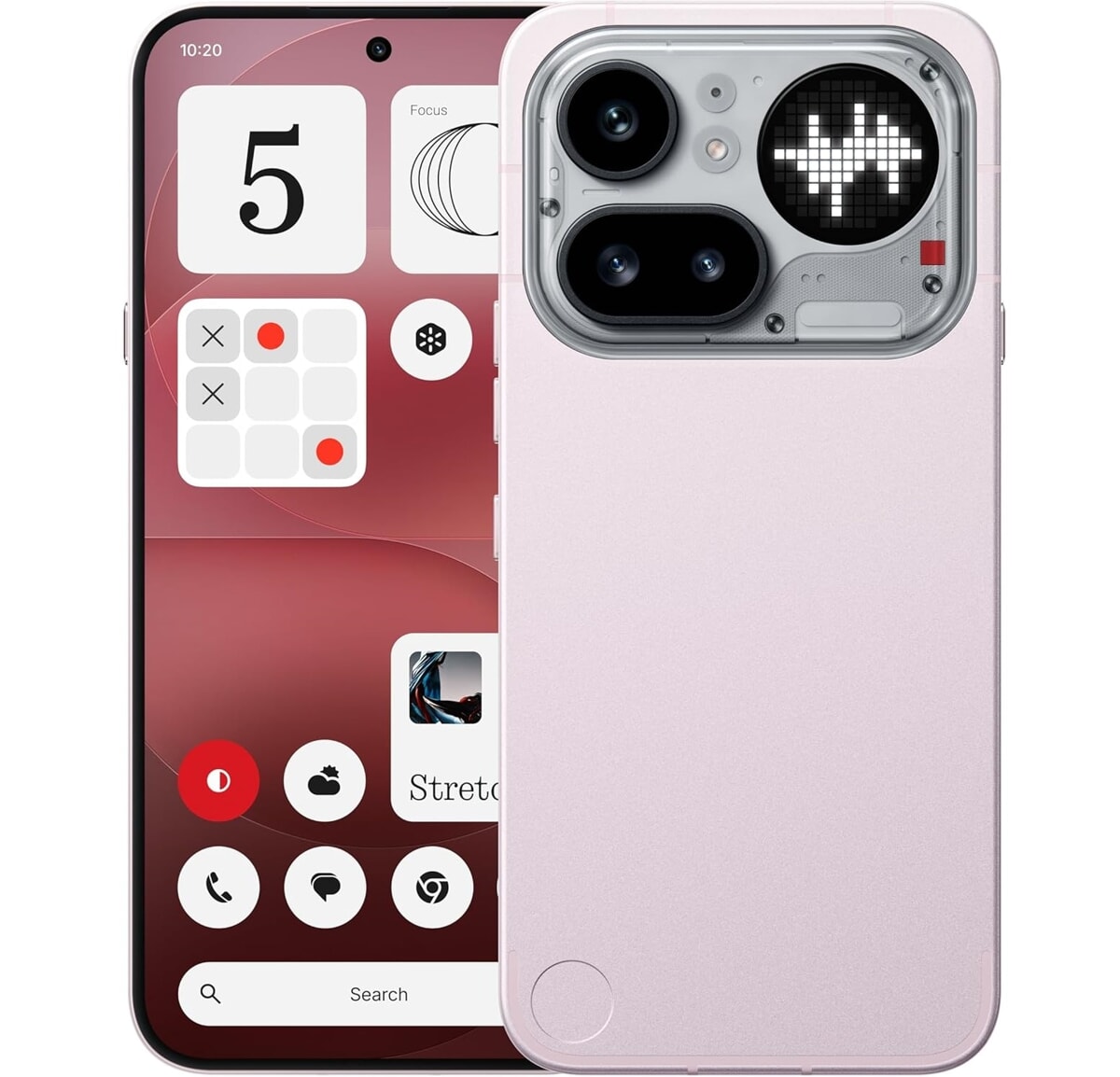 The upper area integrates a transparent “window” with the cameras and the second Glyph Matrix display. Let’s not forget the silver and black colors, to which is added the new metallic pink variant.