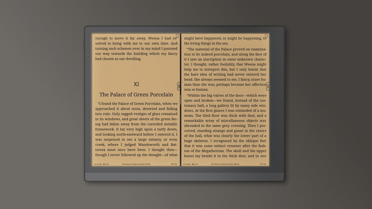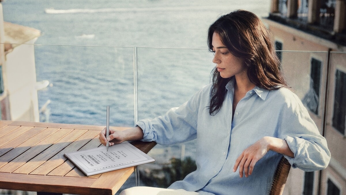 The body, available in Cream and Mist (Fog), contains a 10.3-inch Carta 1200 e-ink display, with a pixel density of 300 Ppi (2,480×1,860). The top glass is treated to deliver a paper-like tactile experience, dramatically reducing reflections even in direct sunlight.